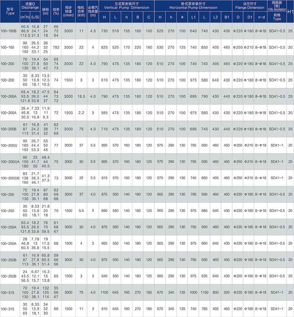 1、泵系统最高压力为1.6MPa.即泵吸入口压力+泵扬程≤1.6MPa。(订货时请注明系统工作压力、泵系统工作压力大于1.6MPa时,应在订货时另行提出。以便在制造时泵的过流部分和联接部分采用铸铁材料。)
